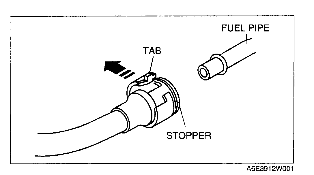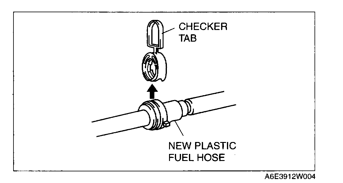 NOTE: A checker tab is integrated with quick release connector for new plastic fuel hoses. The checker tab will be released from the quick release connector after it is completely engaged with the fuel pipe.