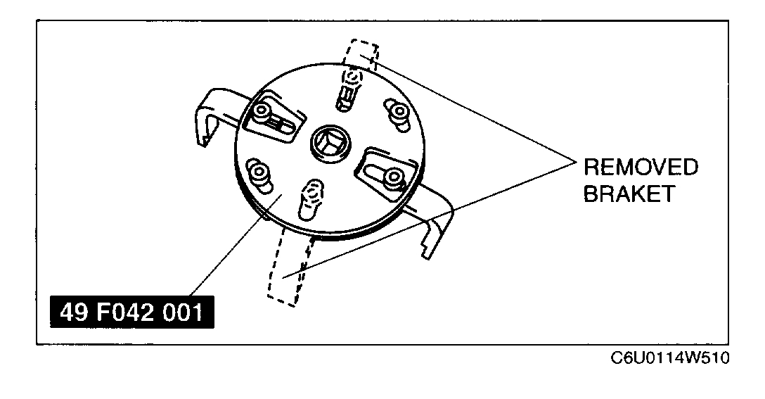 1. Remove the fuel pump cap using the SST with two of the four brackets removed.