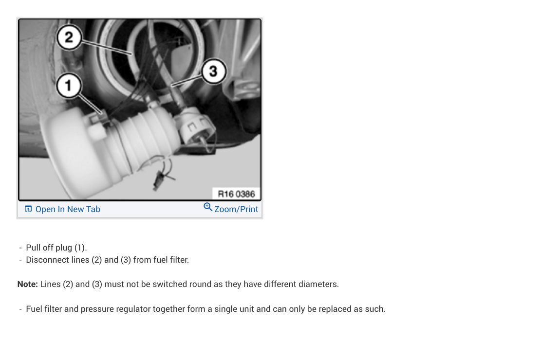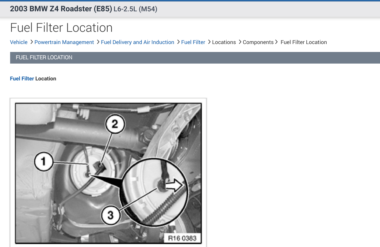 The fuel filter is located in the fuel tank of your vehicle. In the diagrams down I have included the location, Original Equipment Manufacturer[OEM] part number for your reference and the instructions for the removal and installation of the fuel filter for your vehicle. Please go through these guides and get back to us with how everything turns out.