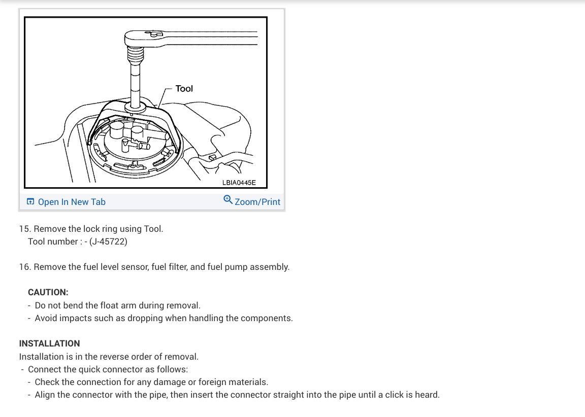 In the diagrams down below I have included the step by instructions for the removal and installation of the fuel filter in your specific vehicle. Please go through these guides and get back to us with how everything turns out.