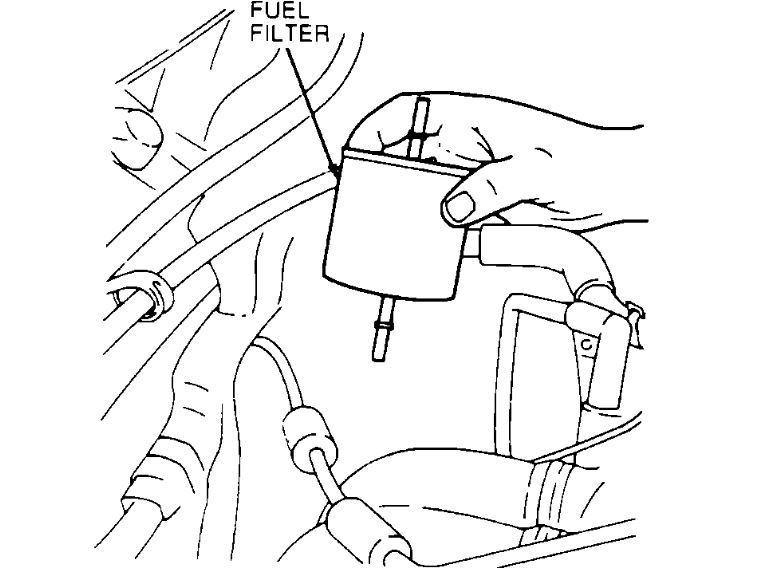 9. Disconnect the lower hose from the fuel filter and drain any excess fuel into the container. Plug the hose.