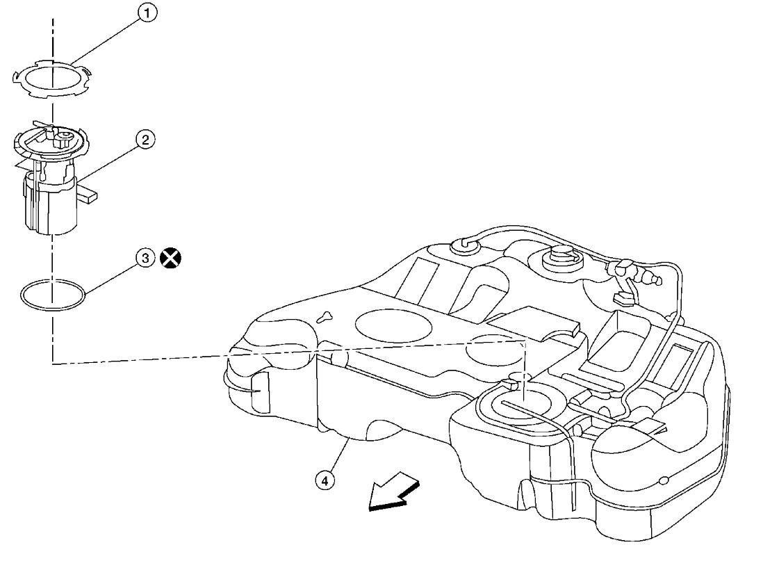 Like many newer vehicles it doesn't have a replaceable filter on its own, instead it has a sock on the pump inlet and a filter all built into the fuel pump module in the tank. Normally you don't change them unless there is a fuel flow problem. If there is an issue you can replace the pump module by removing the rear seat cushion and the access plate under it. Disconnect the lines and power connection. Then use a lock ring tool to remove the retainer. Then remove the module. Install the new module (Nissan 170403TA0D) and reverse the process to install it.