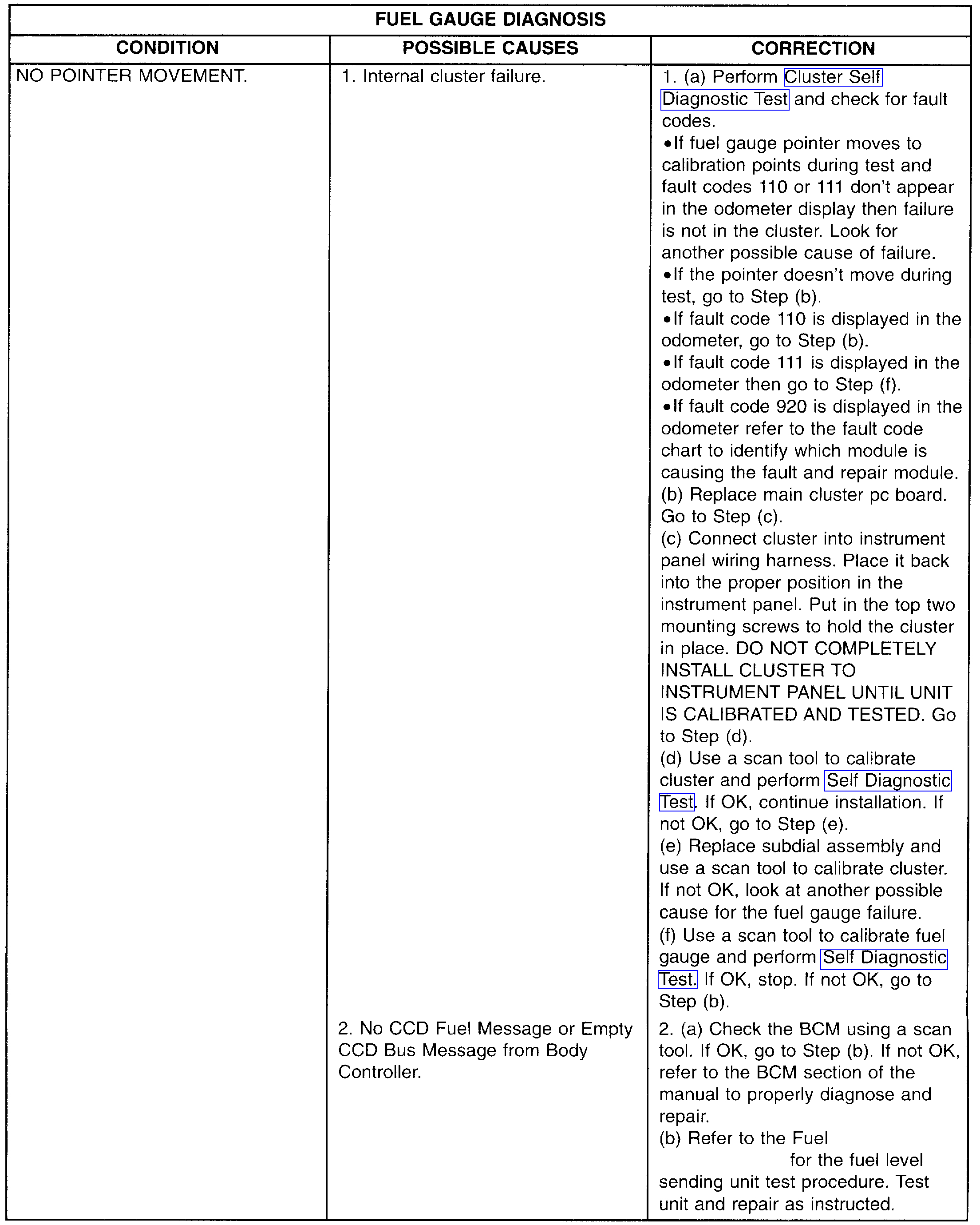 The low fuel light is on. I have replaced fuel pump and sending unit. I have removed cluster and soldered connections. Still no gauge. Am I correct in that the wiring goes though the BCM? Does the PCM control fuel gauge also? The van stalled and has no spark. I have ordered a new PCM, cam and crankshaft sensor hoping to getting it running again, while waiting on parts trying to solve fuel gauge problem too.