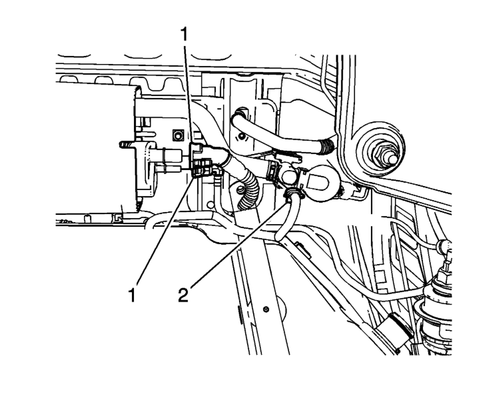 8. Disconnect the evaporative emission lines (1). Refer to Plastic Collar Quick Connect Fitting Service (See: Fuel Line Coupler > Removal and Replacement > Plastic Collar Quick Connect Fitting Service).