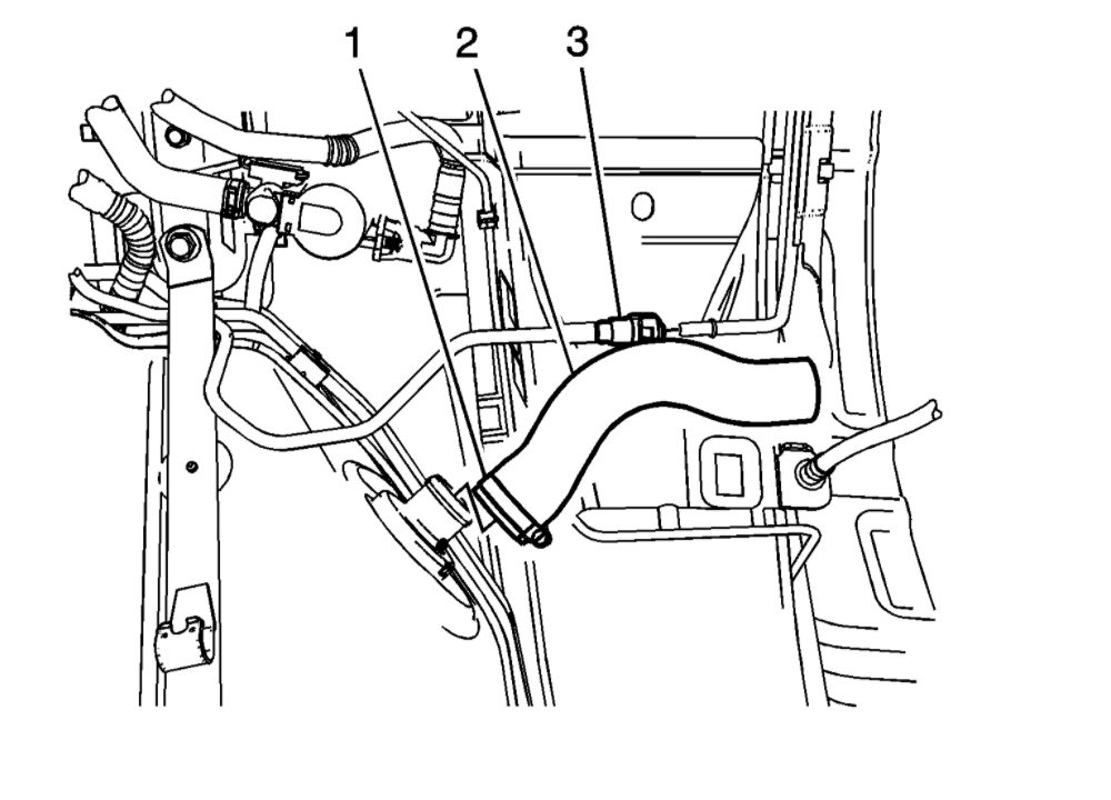 13. Disconnect the fuel feed line (3) and evaporative emission line (2). Refer to Plastic Collar Quick Connect Fitting Service (See: Fuel Line Coupler > Removal and Replacement > Plastic Collar Quick Connect Fitting Service) and Metal Collar Quick Connect Fitting Service (See: Fuel Line Coupler > Removal and Replacement > Metal Collar Quick Connect Fitting Service).