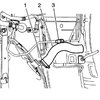 10. Loosen the hose clamp (1) and remove the filler tube (2).
