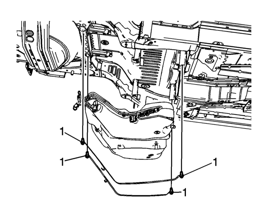 15. Remove the fuel tank strap bolts (1).