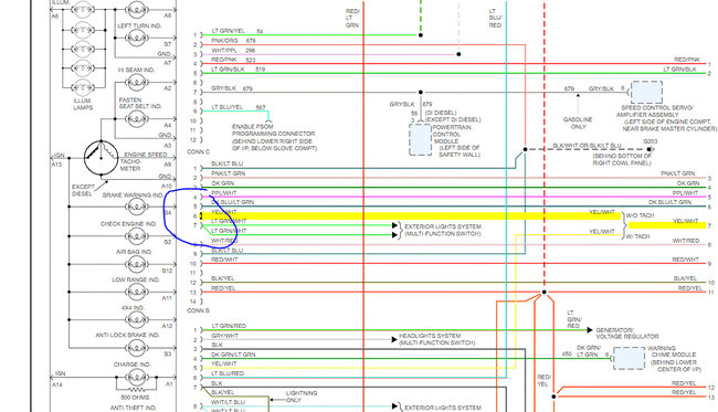 If it does not have power, then go to the dash and check the yellow wire at the dash for power. If it has power, you have a wiring issue. If it does not then the cluster is the issue.