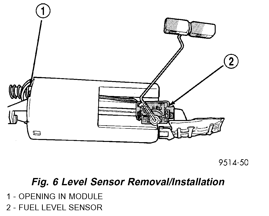 6. Slide level sensor wires through opening fuel pump module (Fig. 6).