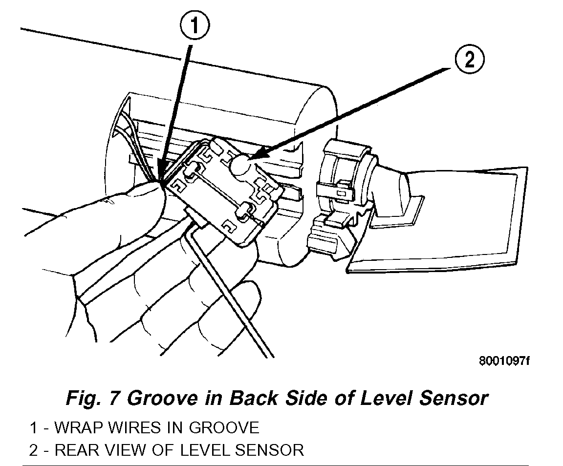 2. Wrap wires into groove in back of level sensor (Fig. 7).