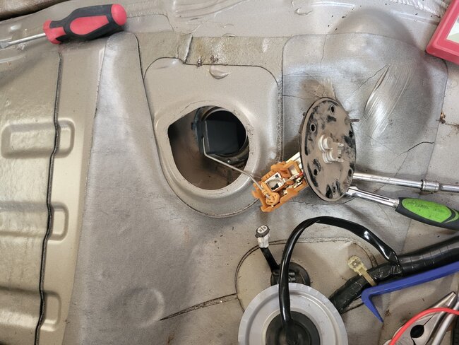I connected the pump back to the harness connector and did the same thing but looking at the gauge on the dash - with the floater fully raised up the needle on the dash moves only to half tank, and resting all the way down, it stays at the same empty reading, with the gas light on too.