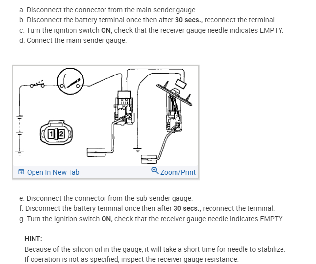 I jumped two pins on the connecter and the needle goes to half tank in two motions (think it's supposed to read full with the pins jumped - the 2 thin wires)