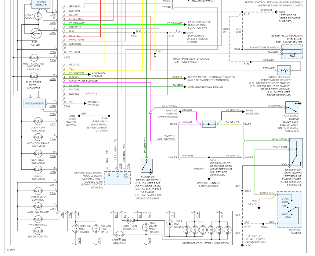 From what I see in the wiring diagram and on my truck, the Fuel gauge sender wire is Yellow, from here it looks as though it goes into the antislosh module, which I no longer have. I do not seem to have varying voltage from the yellow wire, as I slosh the fuel tank back and forth, which I had expected to get.
