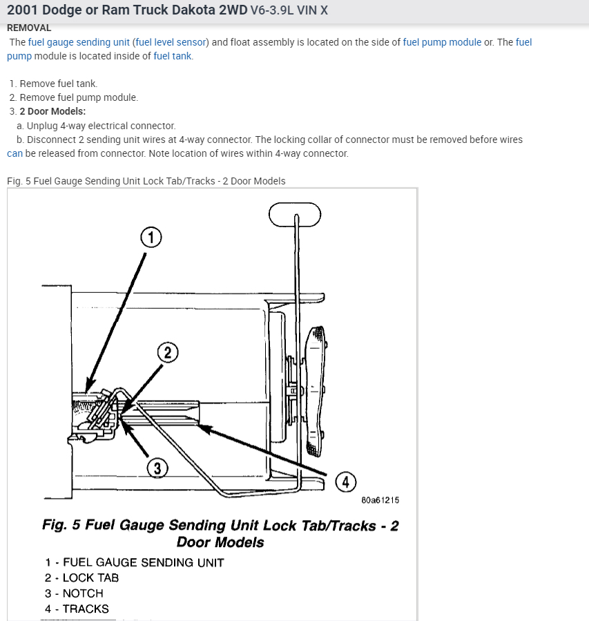 In order to access the level sensor, you will have to remove the fuel tank to get to the pump.