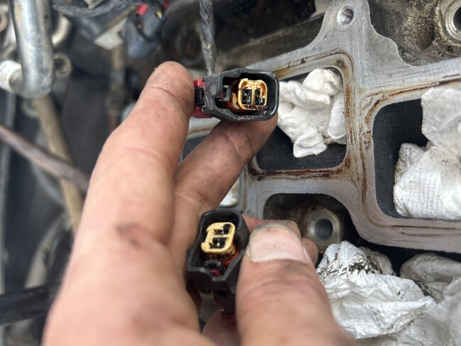 Heys guys, it’s me again with my car listed above. Replacing the intake manifold gaskets and noticed the fuel injectors were dirty, so I started cleaning them and taking the connectors off, I noticed that both the middle ones have oil inside where you disconnect them. Any ideas? Will attach a picture.