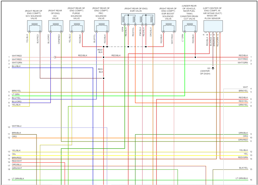Absolutely, I can help. If you look at pic 1 below, I zoomed in specifically on the fuel injectors. You can see the wiring color for each injector. Note: Each injector will have two wires. Each one has a white wire with a red tracer. That wire should always have power with the key in the run position. The second wire is a different color for each injector. Those ones provide the ground path to the PCM to complete the circuit.