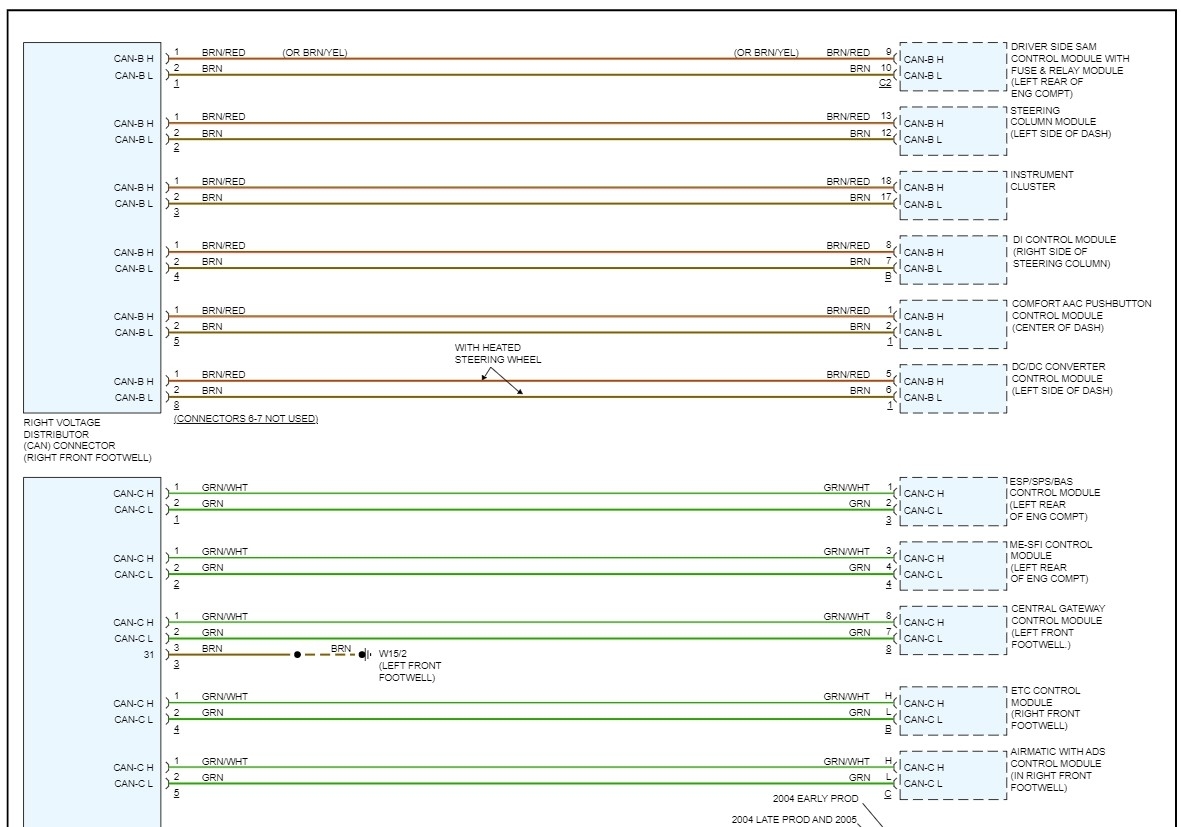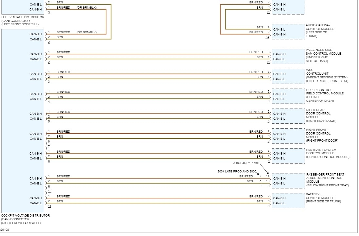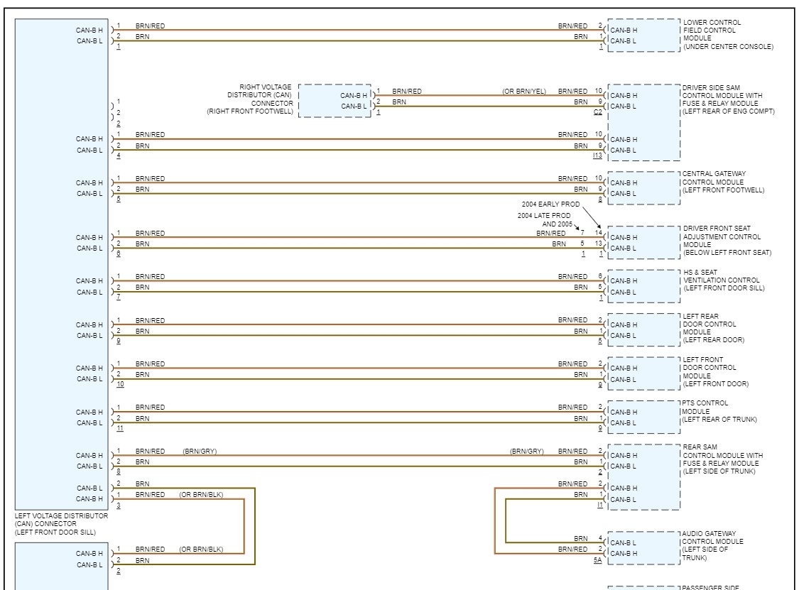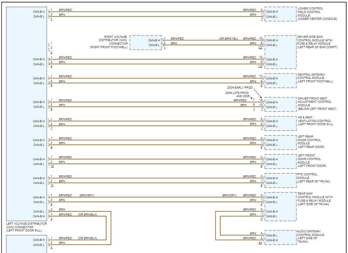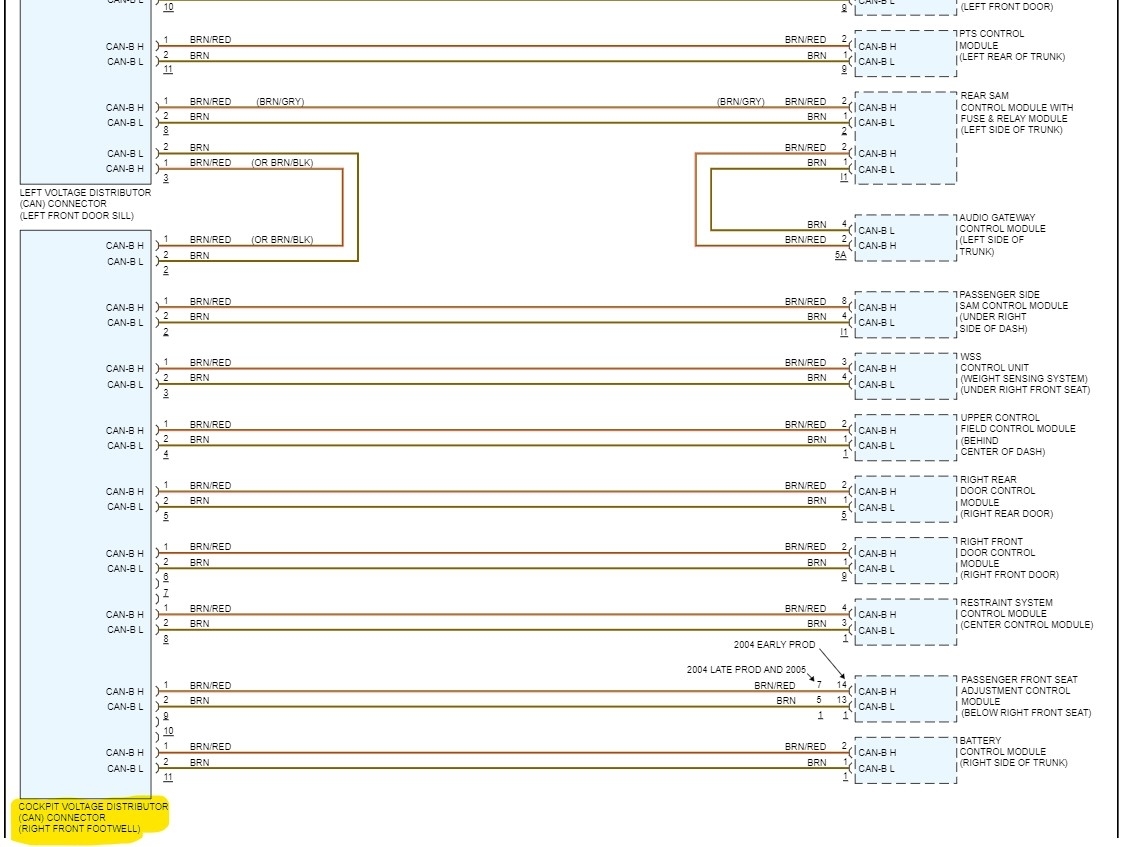 It looks like there are a couple of CAN connectors in the left front doorsill. I wonder if moisture has gotten in there and caused some possible corrosion? I know you've checked the grounds nearby those locations, but it might be worth it to take a quick look at these connectors as well. I've attached photos below of the connector locations.