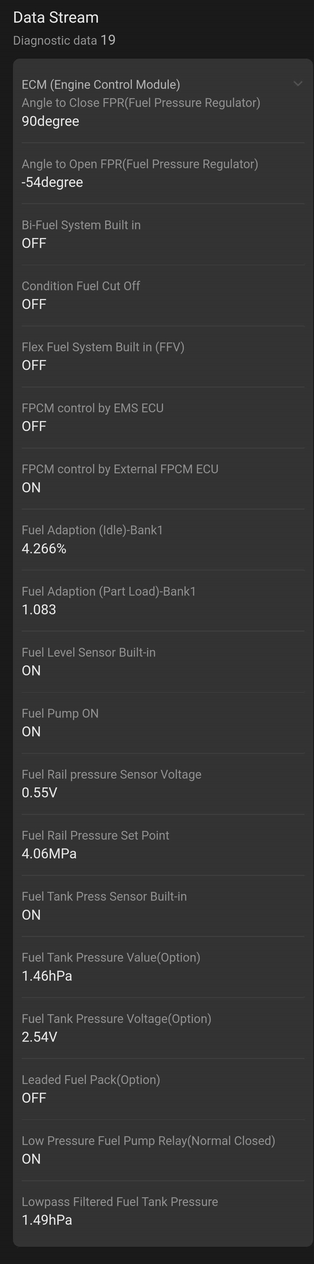 I am trying to post screenshots of a data steam that I was able to pull regarding fuel pressure.