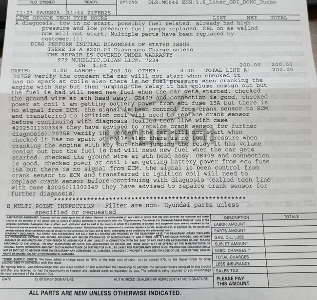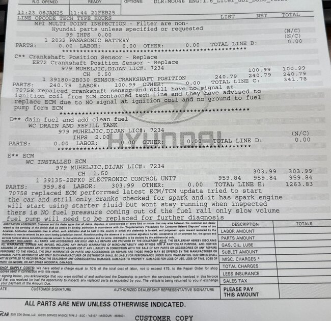Also, Veloster's of this age are known to have issues with fuel line problems. I cannot tell if mine is leaking or not. After trying to start it about 6 times, I do not see any spot of gas underneath it. However, the fuel line is covered so it can leak a little and be held or obscured by this cover.