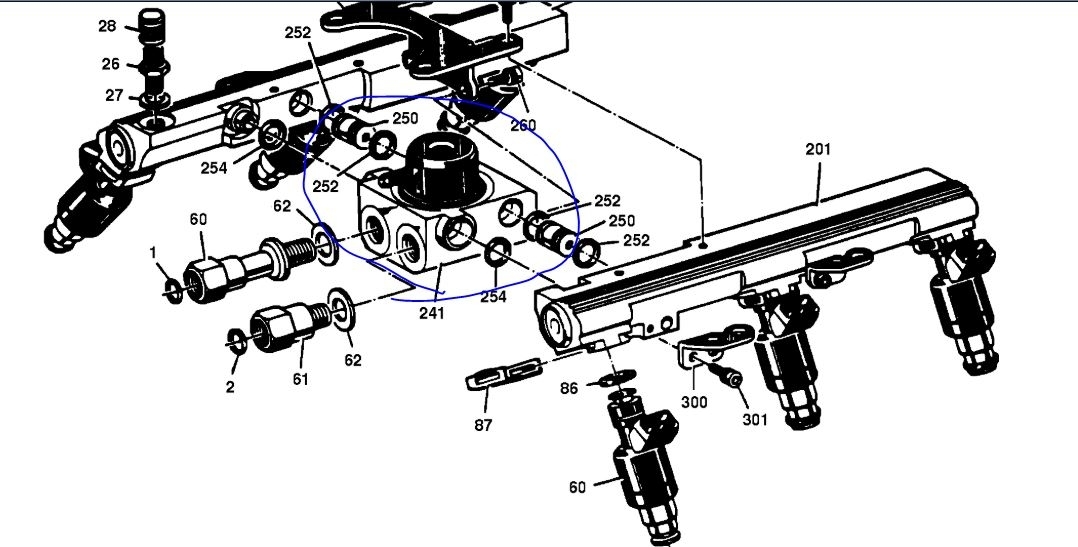 5. Fuel lines at rail. Use a back-up wrench on the fuel rail fittings to prevent them from turning.