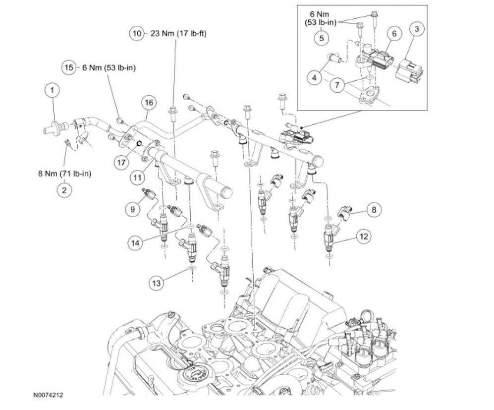 You can stick it under anything and pump it up to 300Lbs of pressure. So, I removed the little triangle sensor. I tested it and it's good" I put it back on the fuel rail.