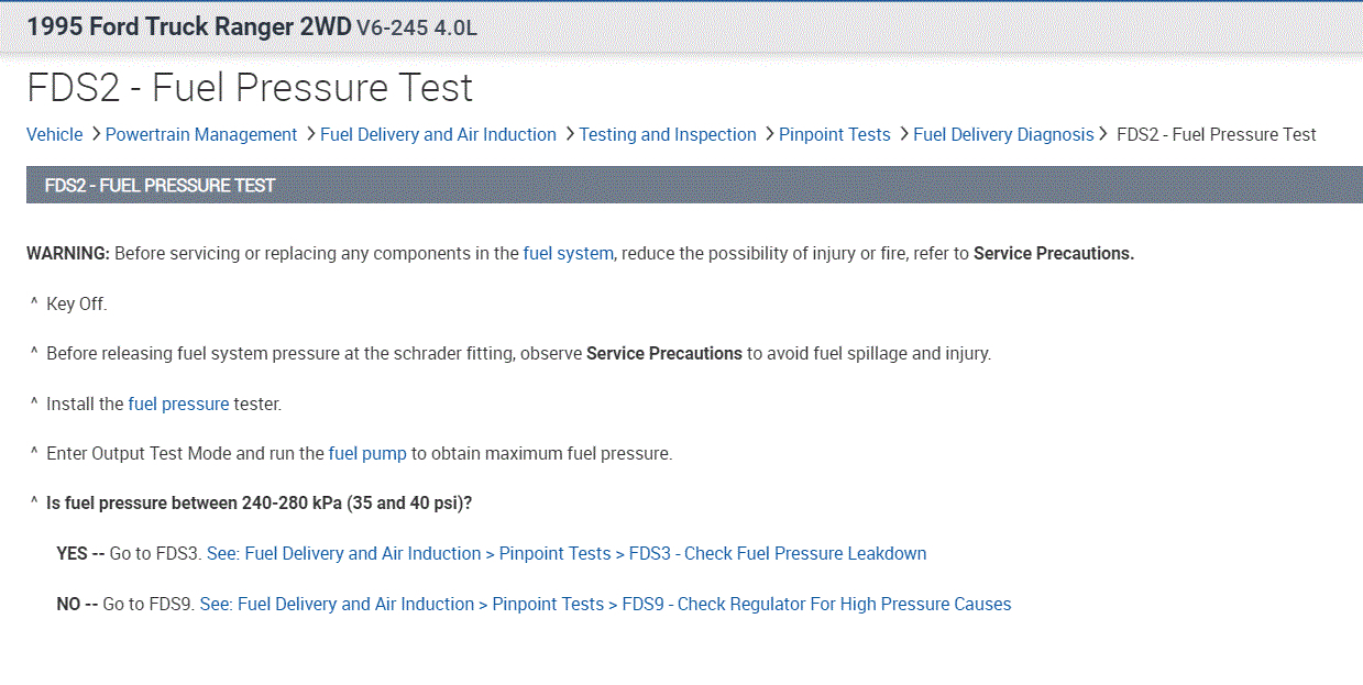 I attached directions below specific to this vehicle. Also, the fuel pressure values are included.