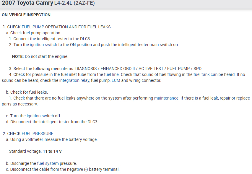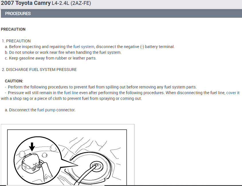 I have also attached the fuel pressure procedure for your vehicle as well as complete fuel line disconnect and repair procedures.