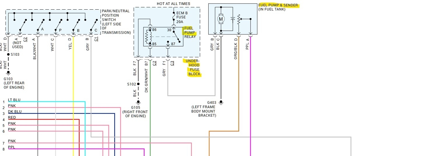 These are the instructions and routing of the fuel lines on the Chassis going back to the fuel tank, the 2nd diagram with the transfer case will not apply for your vehicle being 2WD, To relieve any fuel pressure before disconnecting lines or adapting a fuel pressure gauge to the Fuel rail, you can pull the fuel pump relay and crank the engine over, it may start for a few seconds, but will then stall out due to fuel pressure dropping off. The fuel line diagrams look the same for the Flex Fuel and conventional system. If you need any further info just let us know.