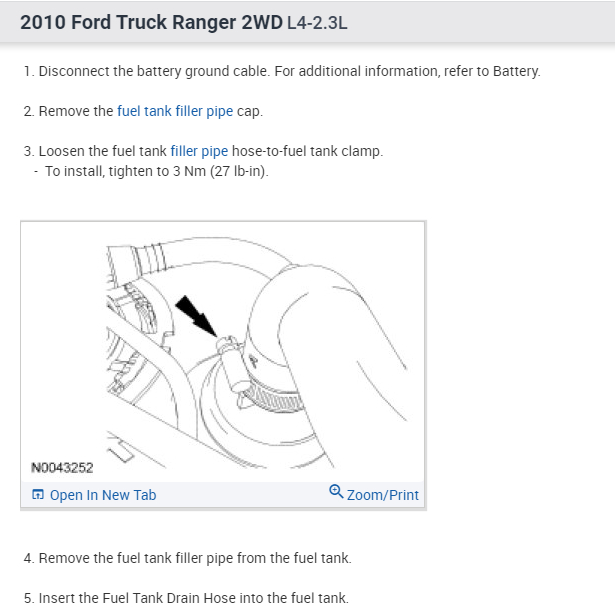 You will have to remove the fuel tank filler pipe in order to drain the fuel.