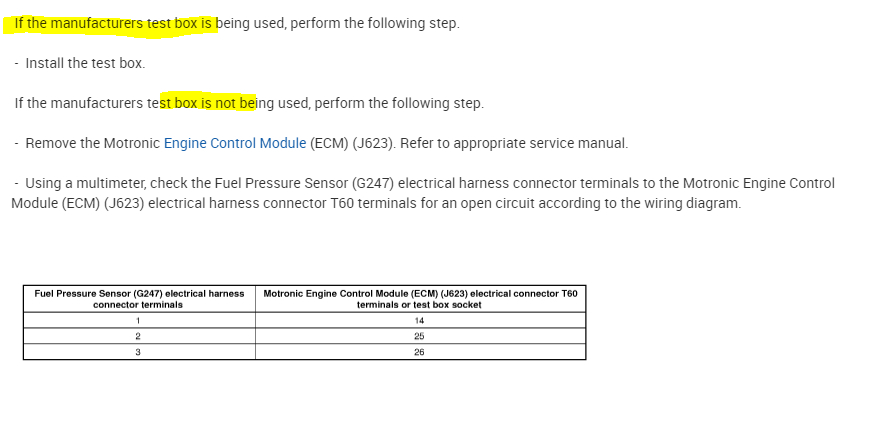 Try the test I provided above first. Also, let me know if and or how the vehicle runs if at all. If we need to code the ECM, that will require vag-com software. It isn't something that most people have.