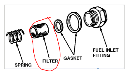 See pics below. They used two different fuel filters. Both are at the carb area.