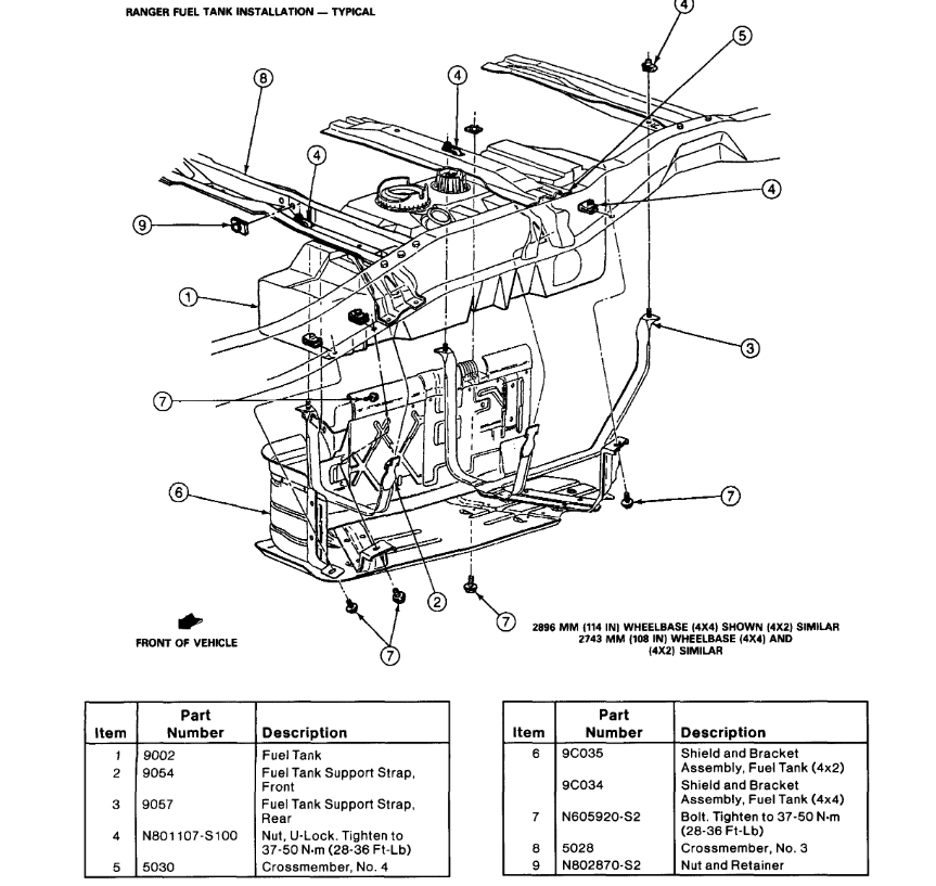 - Tighten U-lock nuts securing front and rear fuel tank support straps to 37-50 Nm (28-36 ft lb).