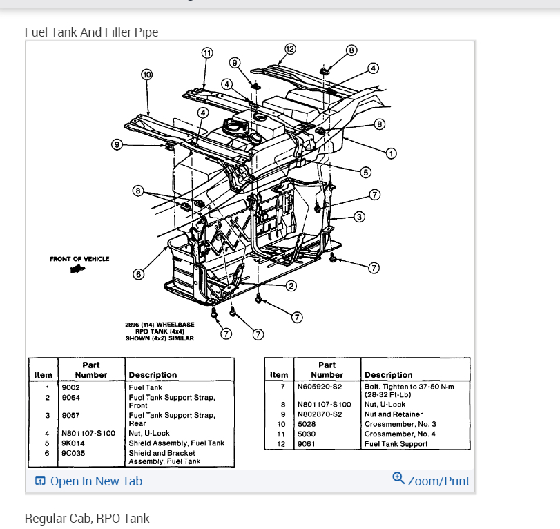 7. Remove bolt and nut from front fuel tank support strap and remove support strap.