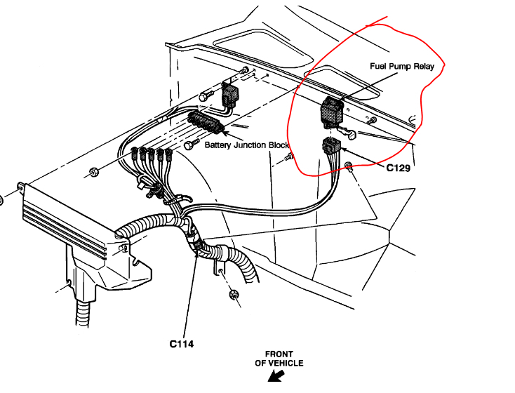 As far as a relay, I suspect you are looking for the fuel pump relay. On this model year, it is mounted on the firewall under the hood. If you look at the pic below, I circled it for you.