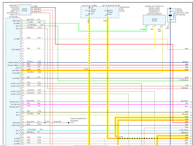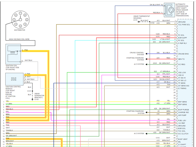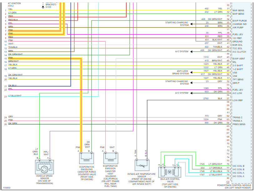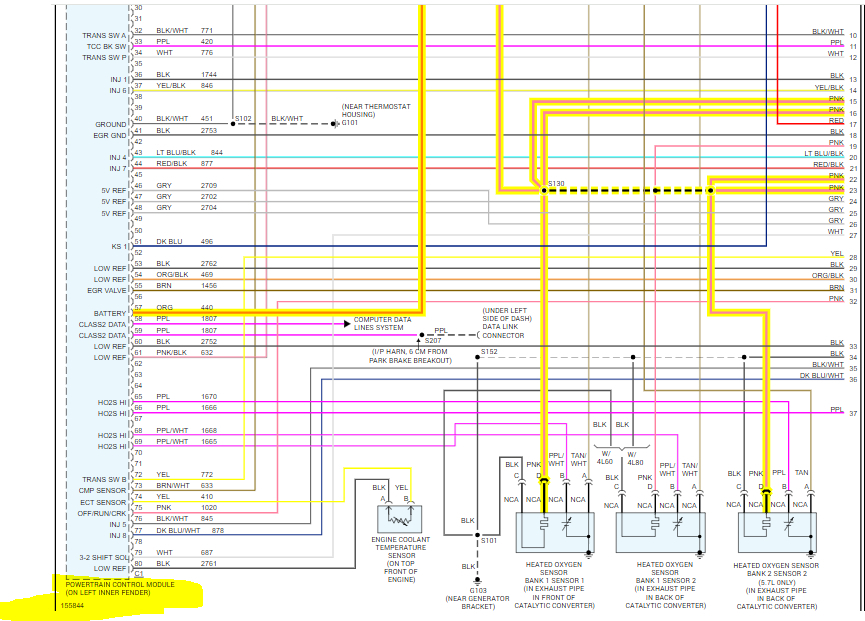 The wiring schematic that includes the PCM is tied into the powertrain management circuit and is four pages long.