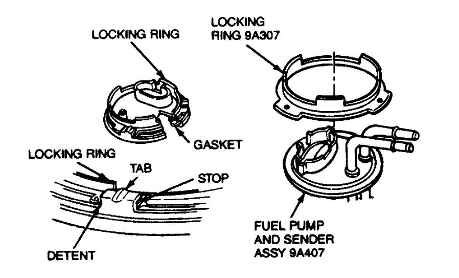 10. Turn the fuel pump locking ring counterclockwise using Fuel Tank Sender Wrench D84P-9275-A or equivalent, and remove locking ring.
