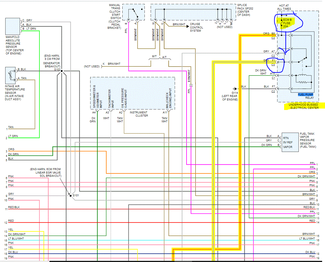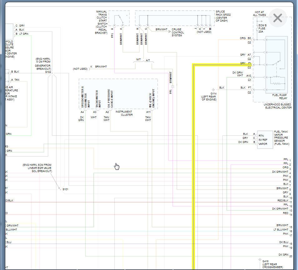 Below, I attached the wiring schematic for the entire powertrain control system in the event you need them. If you look at pics 5 and 6, I highlighted the wiring to the pump from the relay. Also, I circled the fuse and put an arrow where I think the short exists.