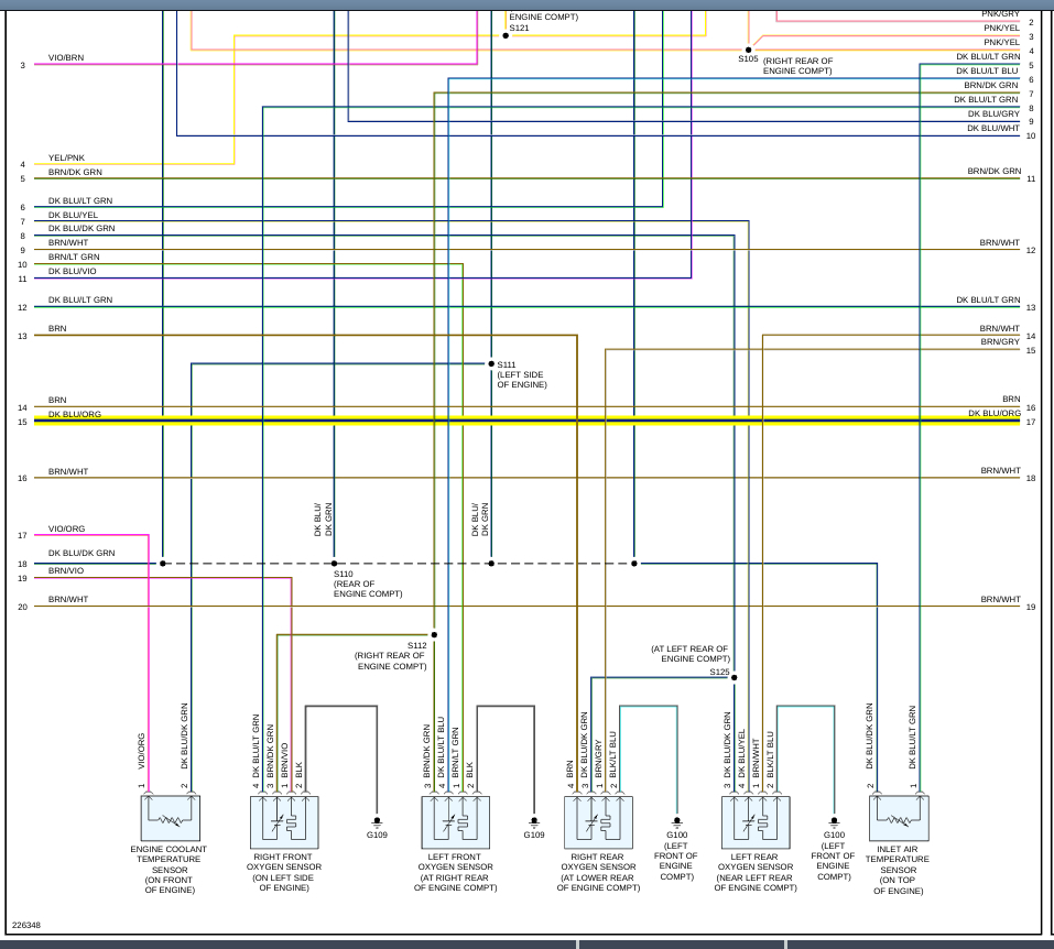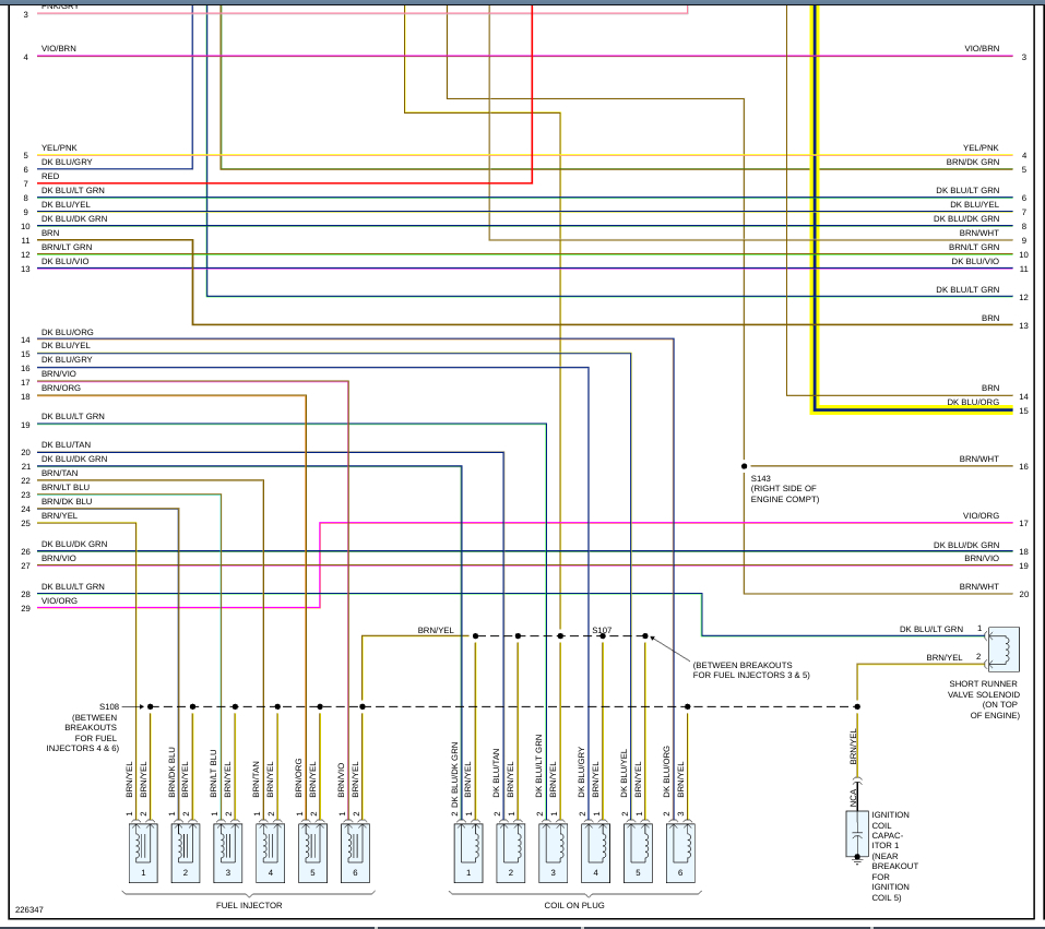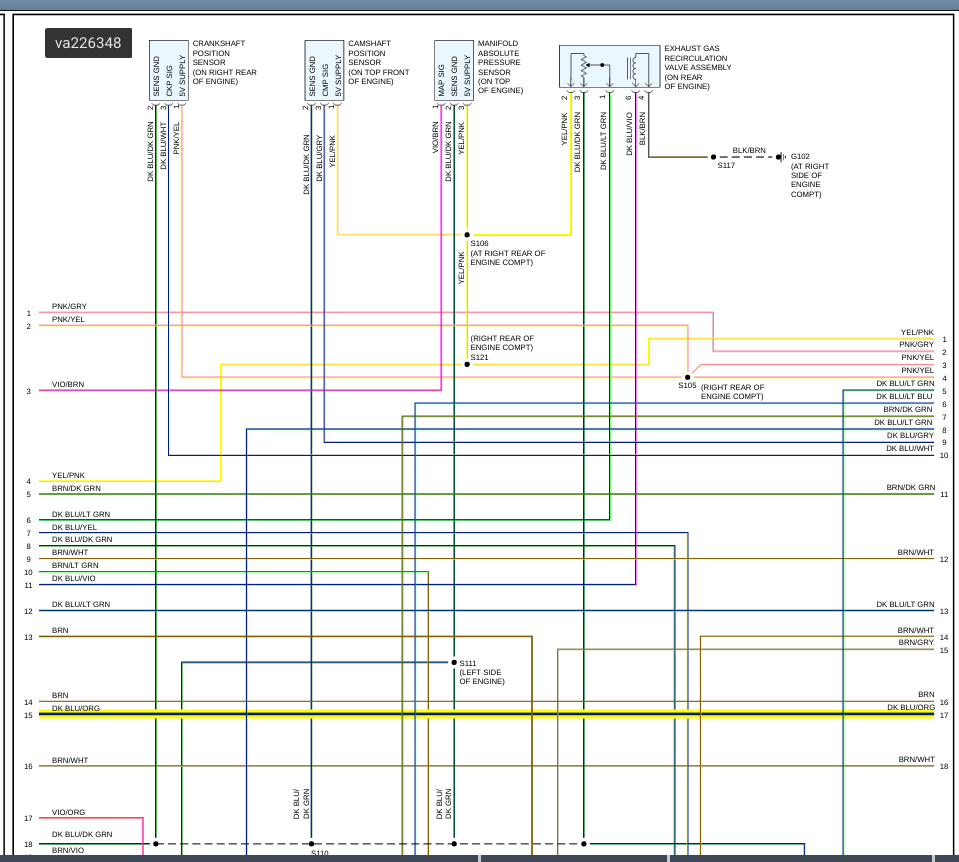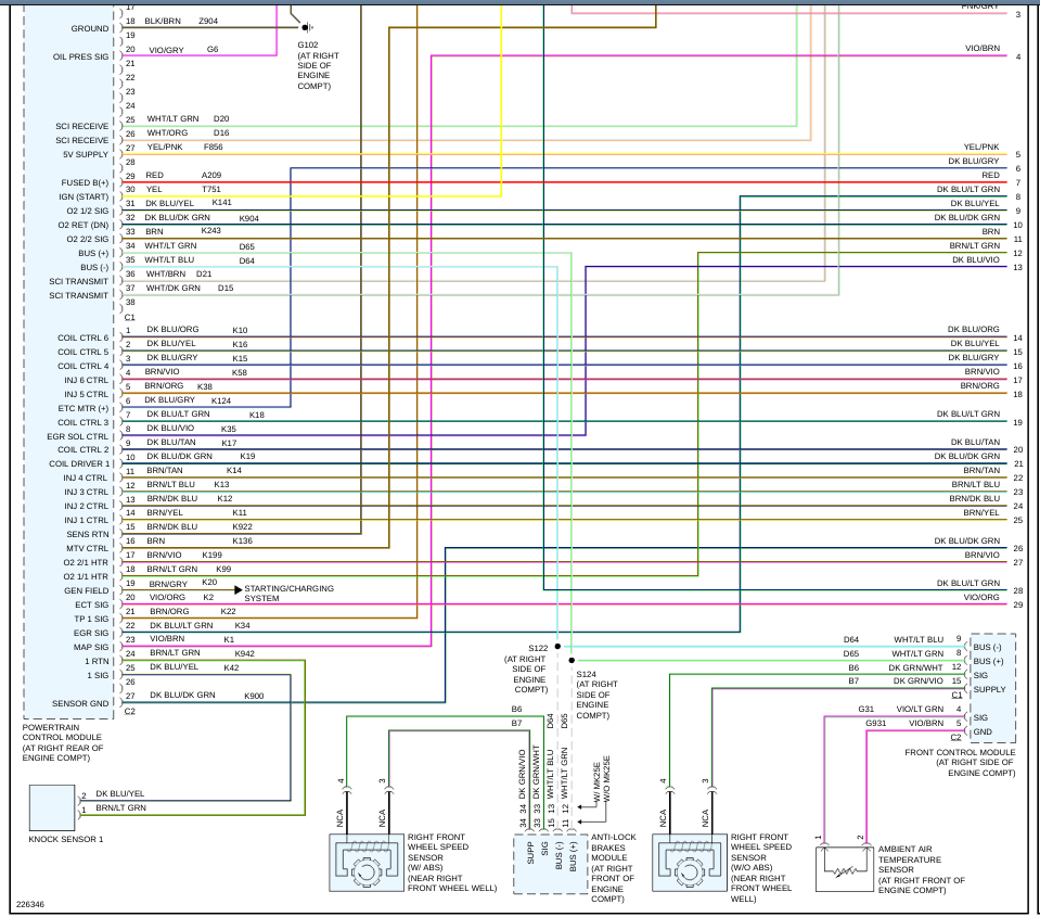 I couldn't find any wire diagrams of the fuel pump, but we tested the wires from the power distribution center and those are fine. We jumped the dark blue/orange wire straight to the positive battery terminal and the pump primes when you turn the ignition over. The car even runs great, but this is not a permanent solution.