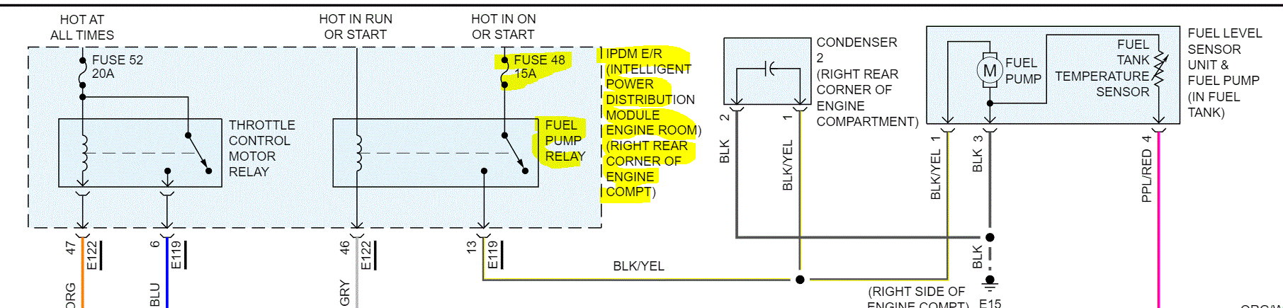The relay and fuse are under the hood in the engine compartment. If you look at the pics I attached, it should help. Pic 1 is from the wiring schematic and in pic 2, I highlighted the fuse and relay locations.