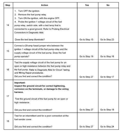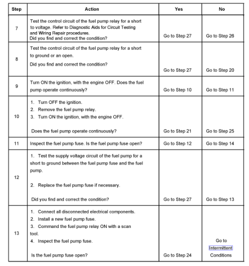 As far as determining the cause, I attached the diagnostics for the fuel pump electrical circuit. Take a look through the directions and let me know if you are comfortable performing them. Also, let me know if you have questions.