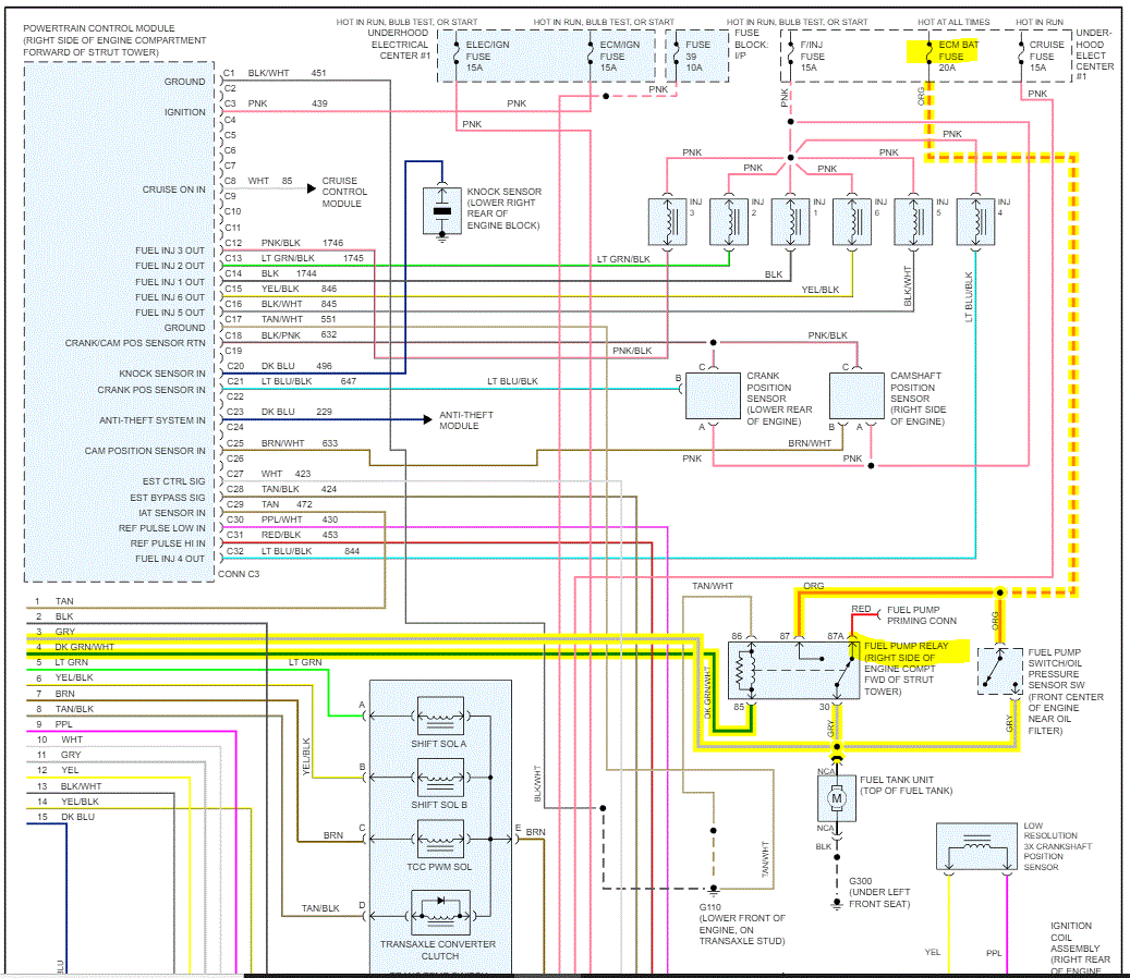 When the fuel pump relay is actuated, power comes from the fuse, through the secondary on the relay, and straight to the fuel pump via an orange wire. See pic below.