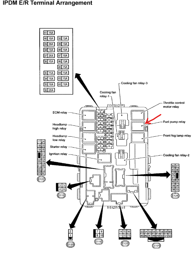 Sure, the fuel pump relay is inside into the IPDM. Here is the location. Check out the images (below). Let us know if you need anything else.