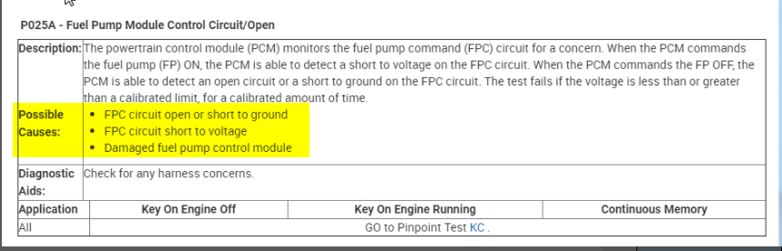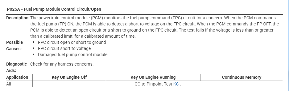 P025A - Fuel Pump Module Control Circuit open