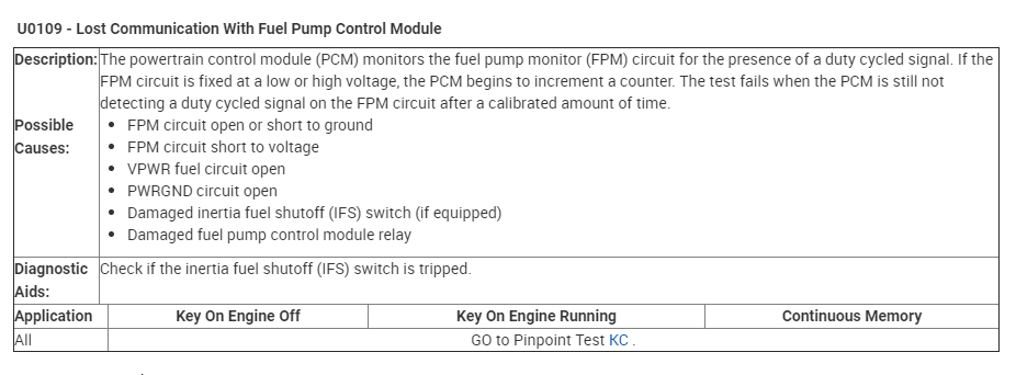 U0109 - Lost communication with the fuel pump module