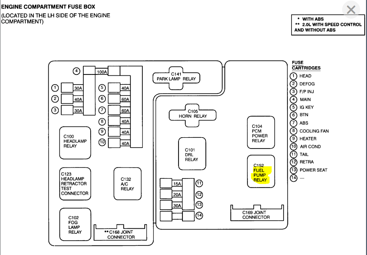 First check the relay, it is located in the fuse box under the hood (see diagram below).