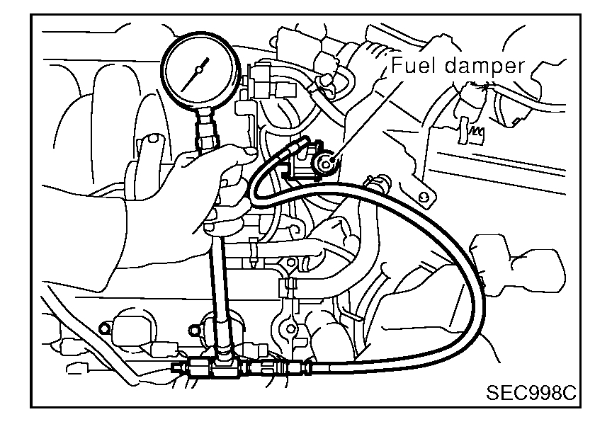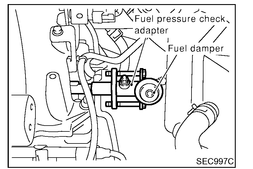 3. Install pressure gauge to the fuel pressure check adapter as shown in the figure.