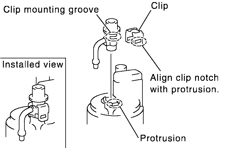 b. With the clip installed, insert the regulator straight by matching the fuel filter protrusion and the clip notch.