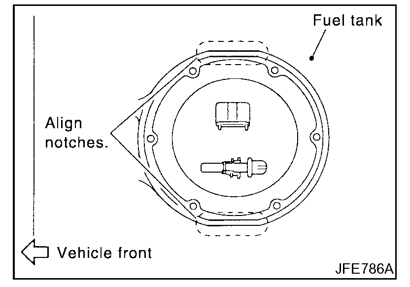 - Install retainer so that its notch becomes parallel with notch on fuel tank.