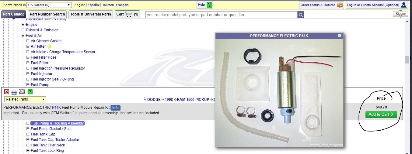 Go to there web site. Put in your truck and go to the fuel pump. They usually deliver the next day.