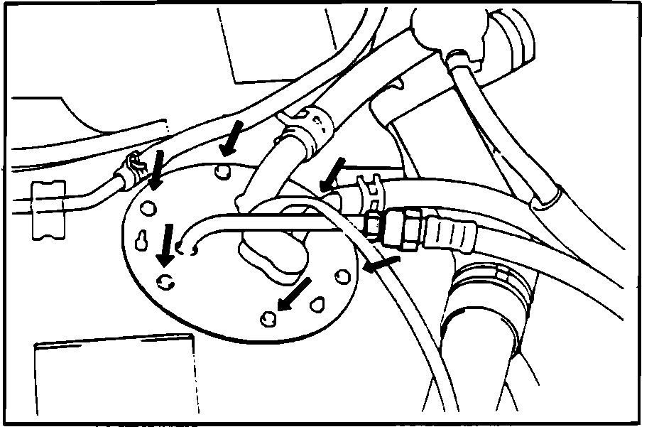 After fuel tank removal, remove the fuel pump installation screws, then remove the pump from the fuel tank.